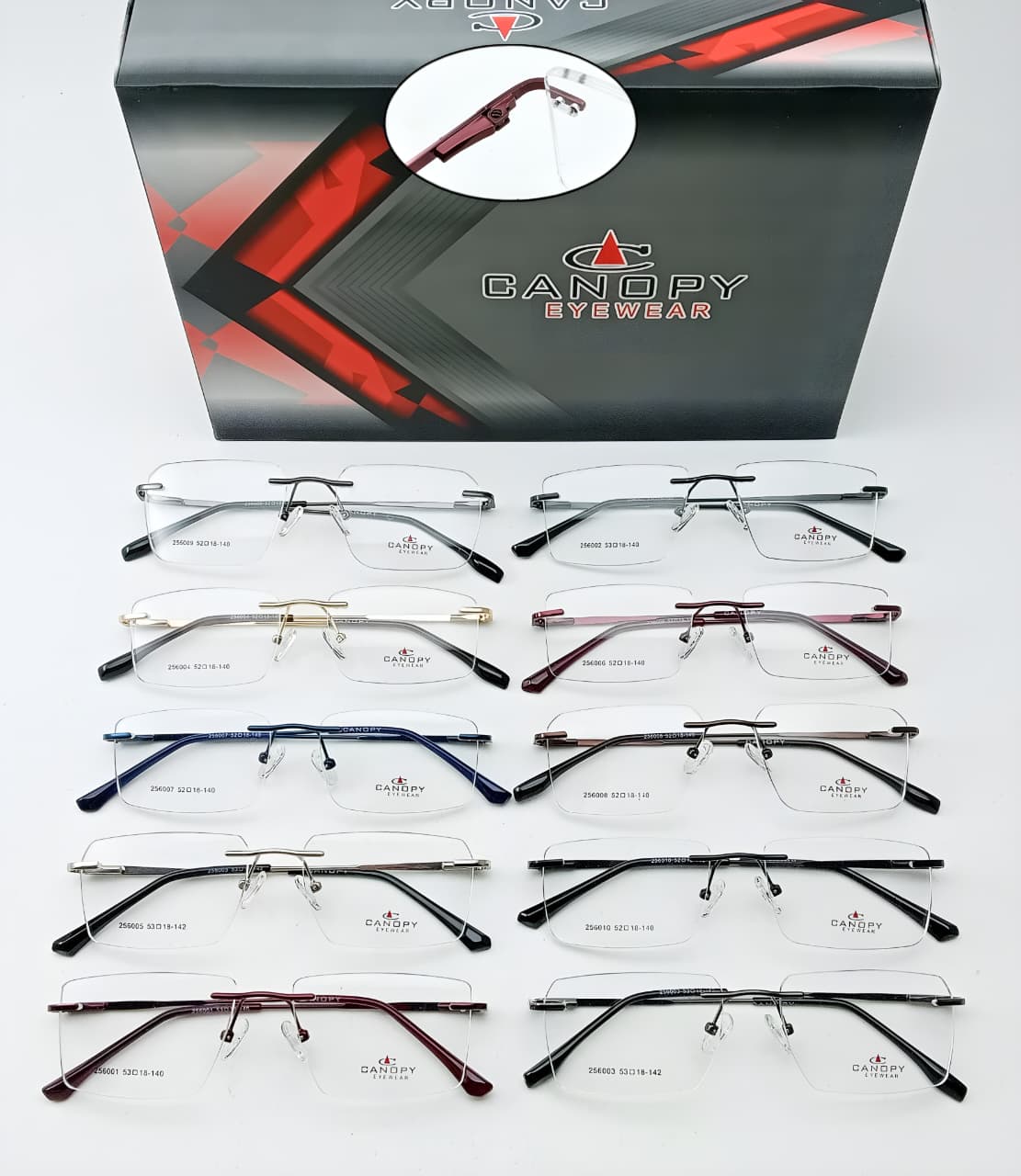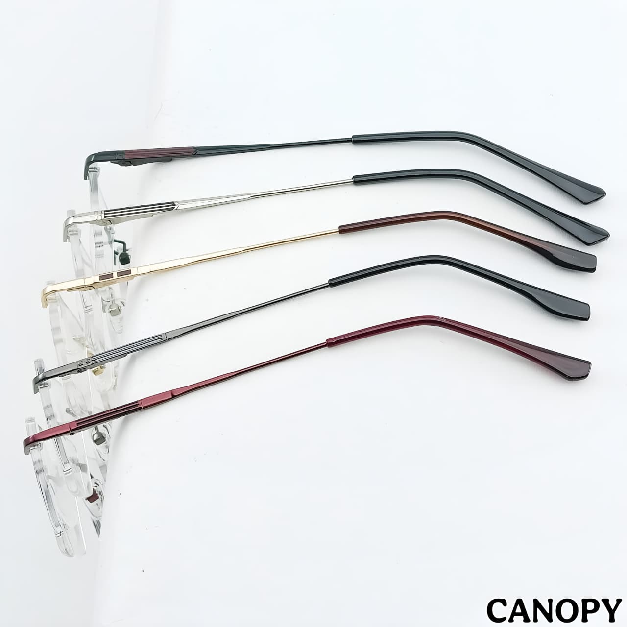 & Free ShippingPremium Canopy rimless eyewear with strong side metal and flexible spring temples. Lightweight, elegant design suitable for daily wear. Available in attractive color mix models.