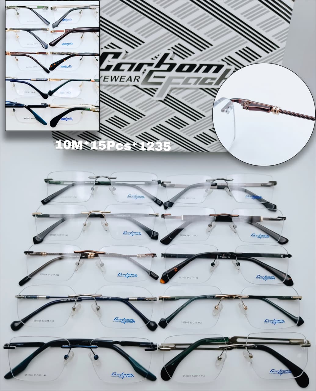 & Free ShippingThe Carbon Effect Premium Rimless Frames offer a sleek, professional design combined with superior comfort. Featuring flexible temples and durable construction, these unisex frames are ideal for prescription use and everyday styling.