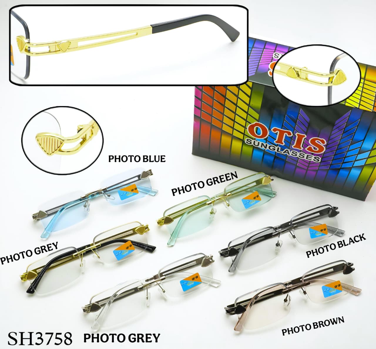 & Free ShippingStylish rimless sunglasses featuring premium metal temples with MAYBACK logo and advanced photochromatic lenses that automatically adjust to sunlight.