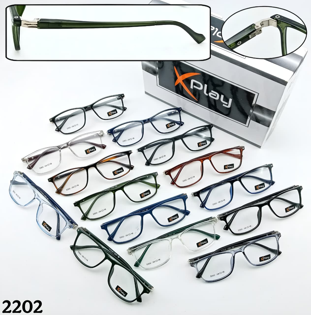 & Free ShippingX Play TR frames, 10 models 15pcs color mix box. Front & side TR with spring hinges. Box to box only. Price ₹75/-.